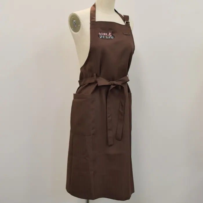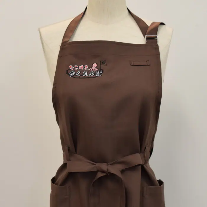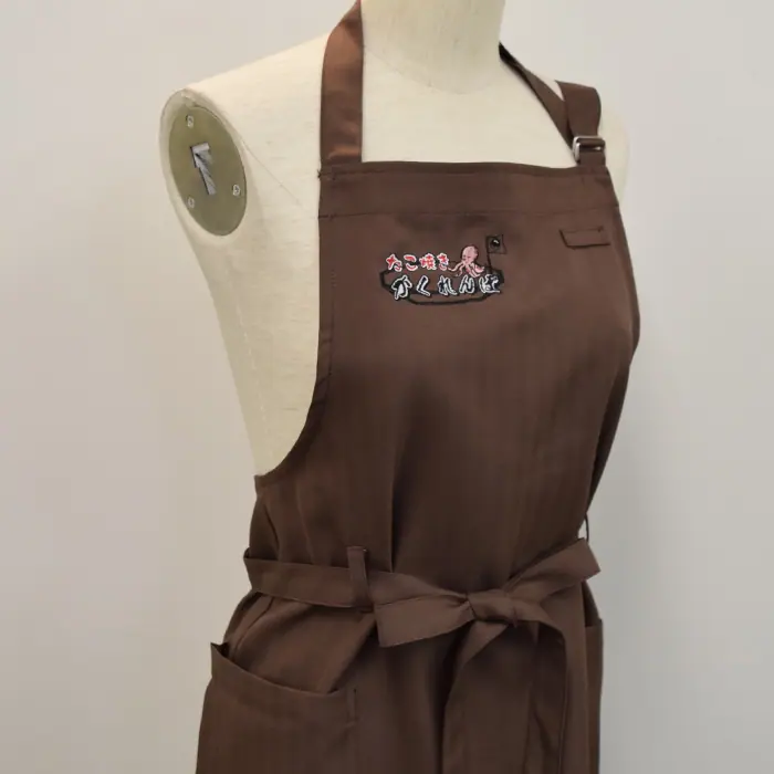 高級感のあるヘリボーン織のエプロンへロゴ刺繡をご依頼いただきました。