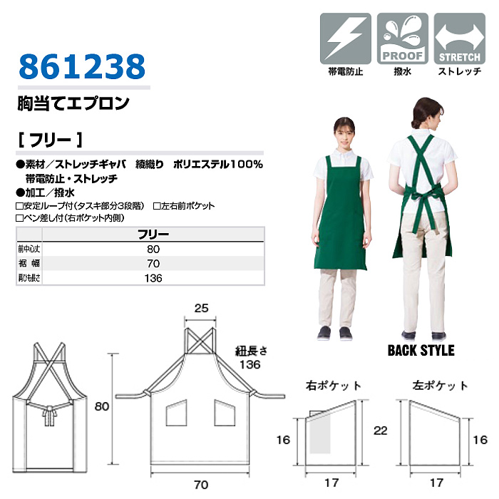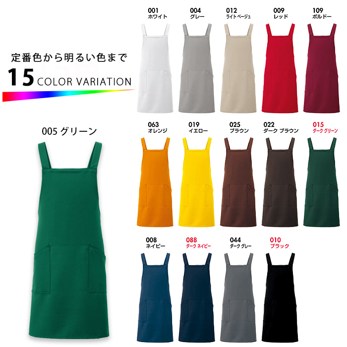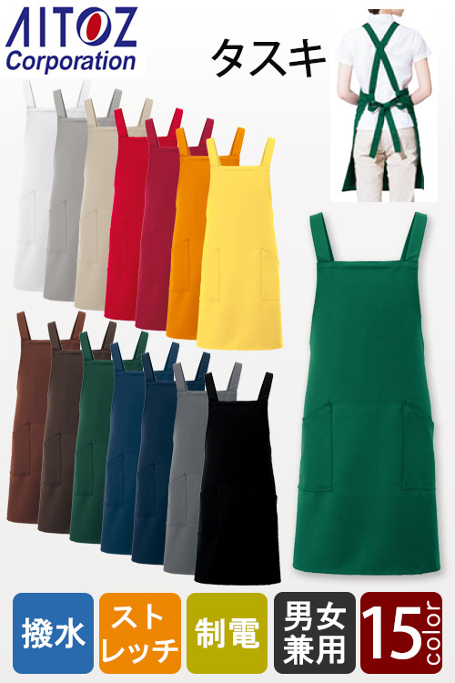 タスキ胸付エプロン15色ストレッチ・撥水・制電加工