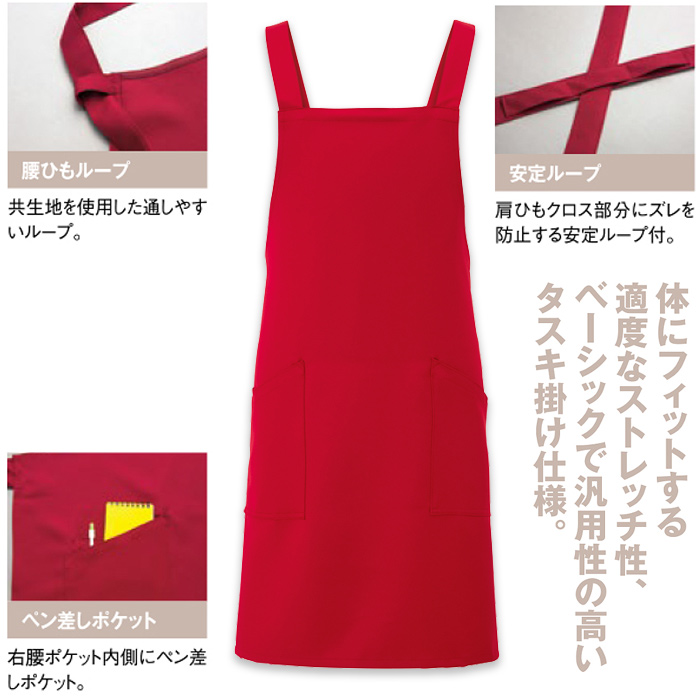 【飲食店販売店制服】タスキ胸付エプロン15色 ストレッチ・撥水・制電加工