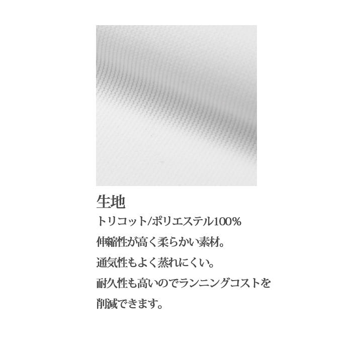 白のみですが防透付きで透けにくく、吸汗速乾性があり、清涼感もあり、忙しい時も快適です。