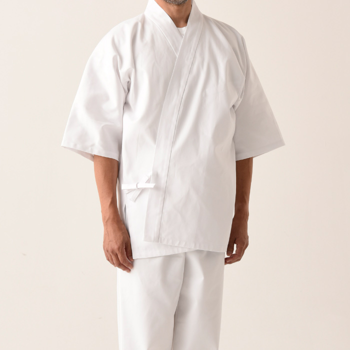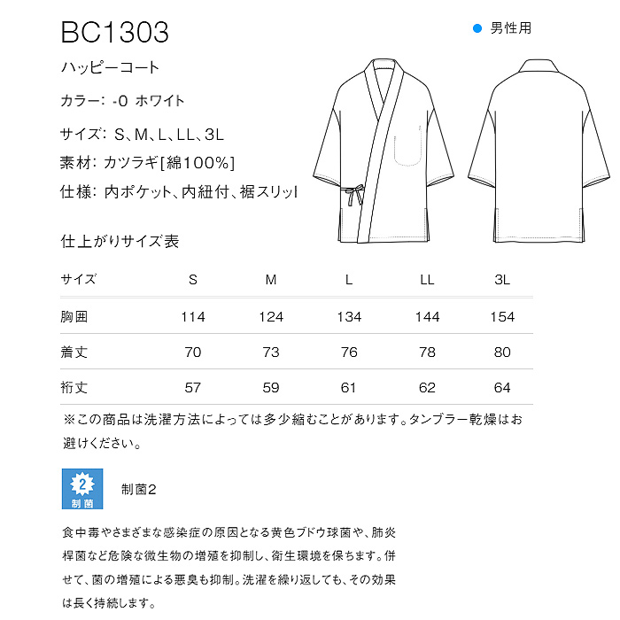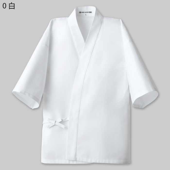 【飲食店販売店制服】ハッピコート白【男性用】カツラギ綿100%しっかり厚手 制菌