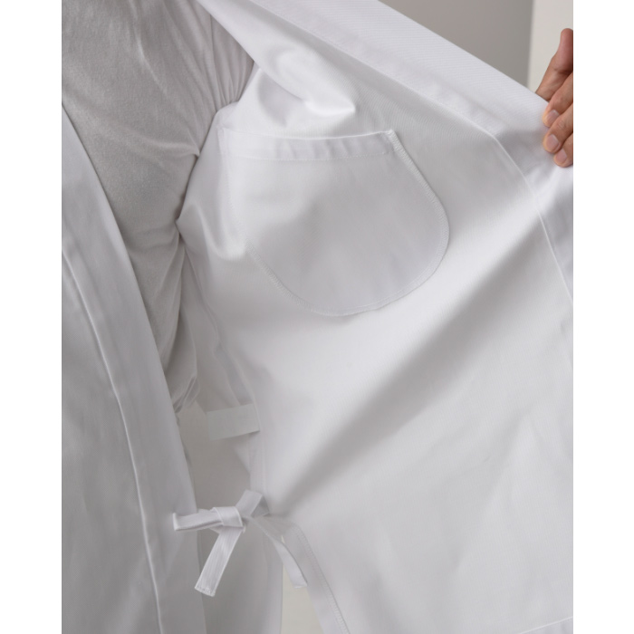 【飲食店販売店ユニフォーム】ハッピコート白【男性用】カツラギ綿100%しっかり厚手 制菌