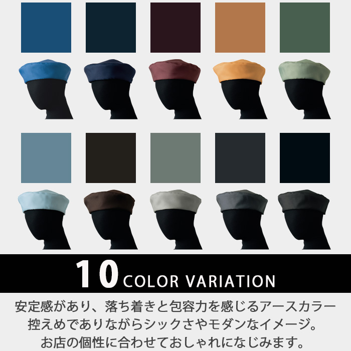 【飲食店販売店制服】 ナチュラルカラーベレー帽10色【兼用】ベルトが表側に見えない洗練されたデザイン