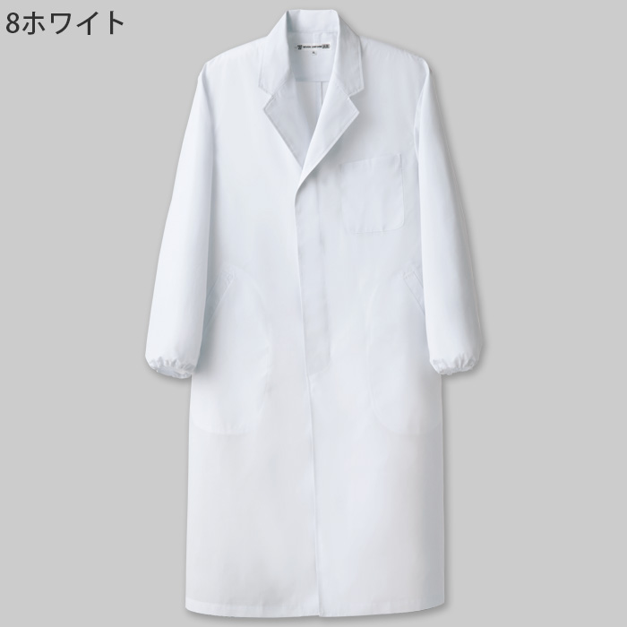 ¥7,700専門性の高いお仕事用白衣コート。見た目スッキリ、ボタンが作業の邪魔をしないボタンが隠れるシングル白衣。