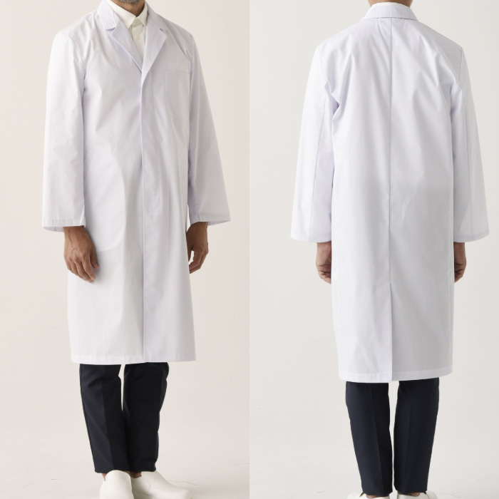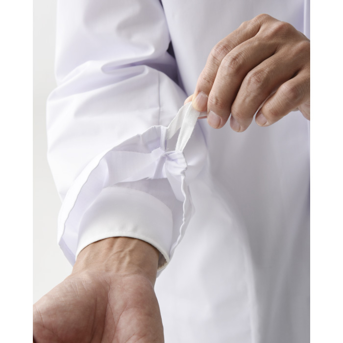 【研究系・食品開発・管理栄養士】ボタンが隠れるシングル白衣【男性用】袖口絞れる2WAYタイプ