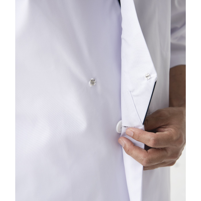 【飲食店販売店制服】ボタン留ハッピコート白に紺エリ【男性用】ポリ65%綿35%タッサー