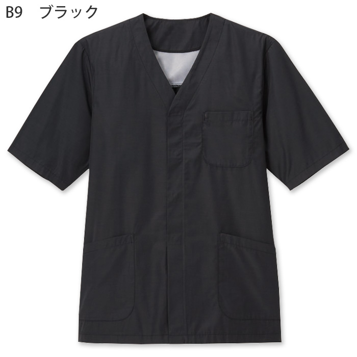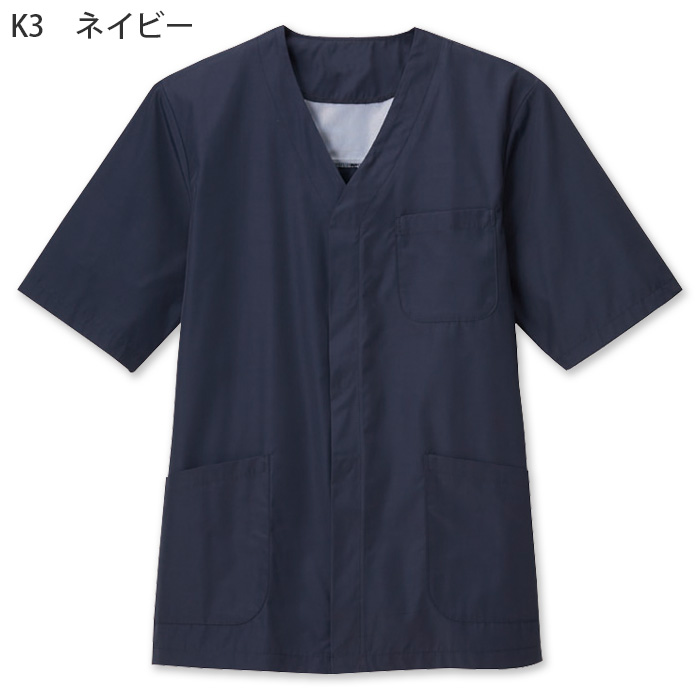 | 仕様 | HACCP支援袖裏体毛落下防止ネット付き/左胸、両腰ポケット/前身スナップボタン/背中ベンチレーション |