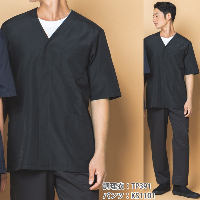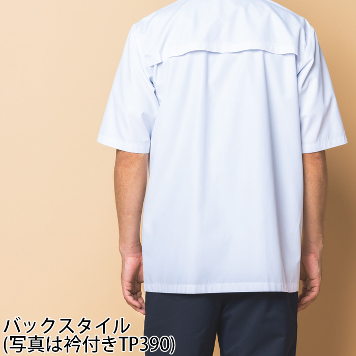 【飲食店販売店制服】エリなし半袖調理白衣【兼用】涼しい・体毛落下防止ネット付