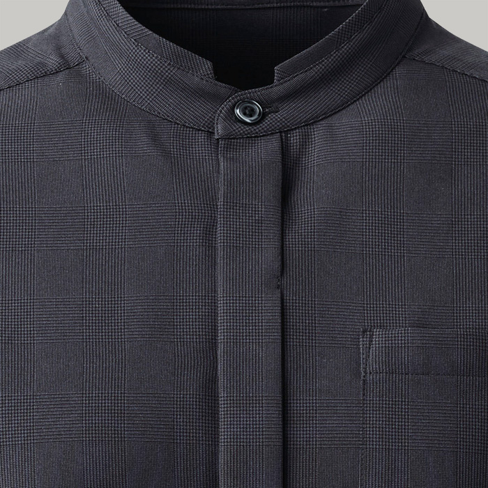 シンプルで美しく。1枚で凛とした姿に。上品なグレンチェック柄の男女兼用スタンドカラー長袖シャツ。