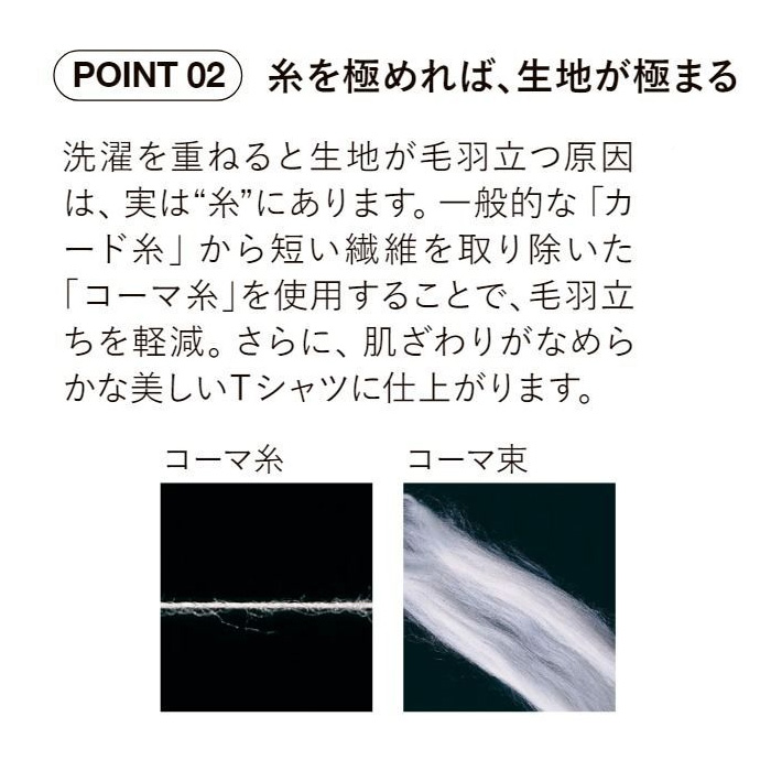 素材は綿100%のコーマ糸を使用しており、毛羽立ちが少なく、洗濯を重ねても美しい状態を保ってくれます。