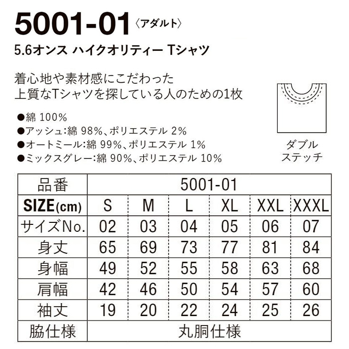 | 商品名 | 5.6オンス ハイクオリティーTシャツ【男女兼用】 |
