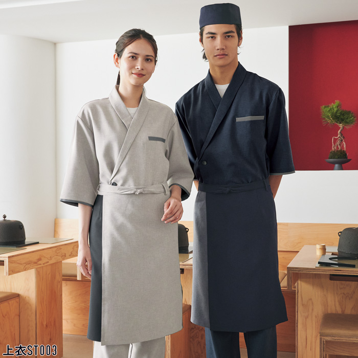 伝統と現代が融合。伝統的なデザインや色彩を取り入れつつ、着心地や動きやすさにこだわったシリーズ「紡ぐ衣(つむぐころも)」。個性をそっと香らせて。古(いにしえ)と今を紡ぐ、新しい和風飲食店ユニフォームです。