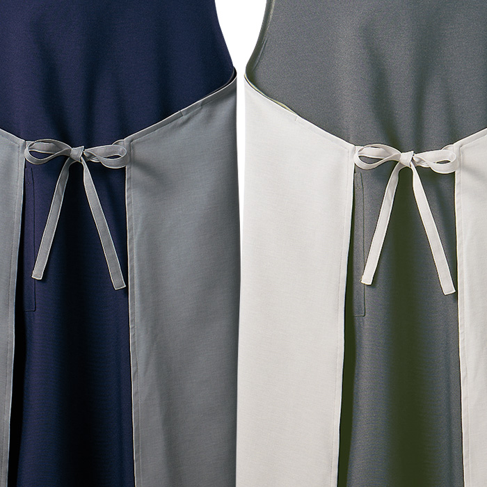 【飲食店販売店制服】紡ぐ衣 胸付エプロン【兼用M/L】配色がアクセント 4通りの着こなしが可能