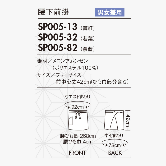 | 商品名 | 腰下前掛【男女兼用】 |