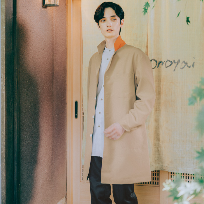 私服の上にはおるだけで、たちまちプロの雰囲気になるロングジャケット。エリ裏配色がアクセントです。