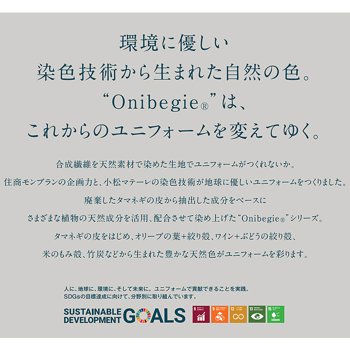 環境に配慮した地球に優しい制服。野菜や植物で染めた自然の色です。