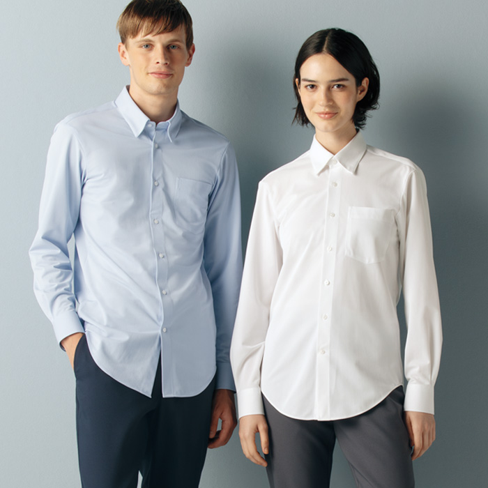 【飲食店販売店ユニフォーム】比翼ボタンダウン長袖ニットシャツ4色【兼用】シワになりにくく、お手入れしやすい