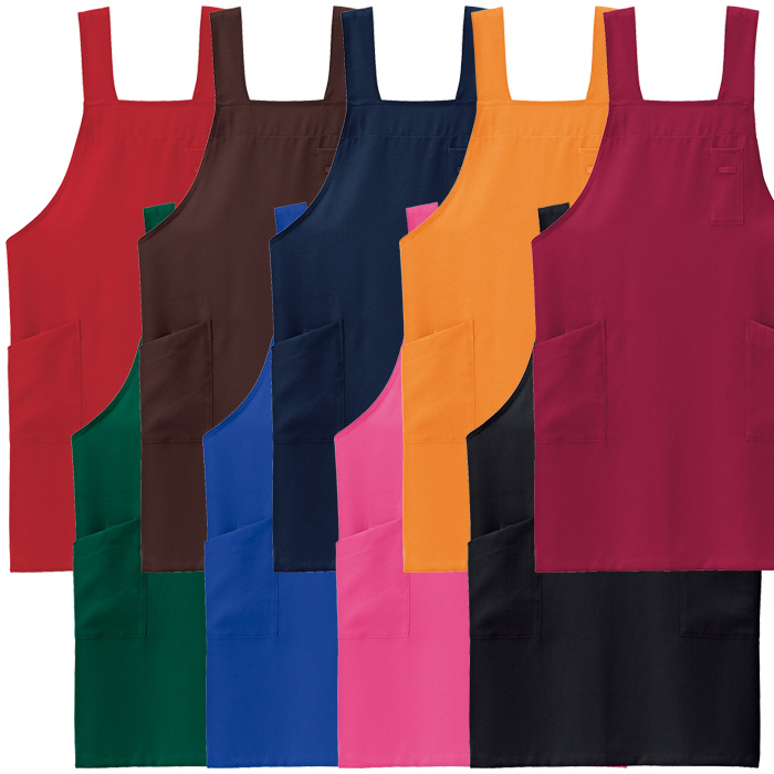 【飲食店・販売店制服】安くて高品質 H型胸当てエプロン(9色)彩り鮮やか、バリュープライス